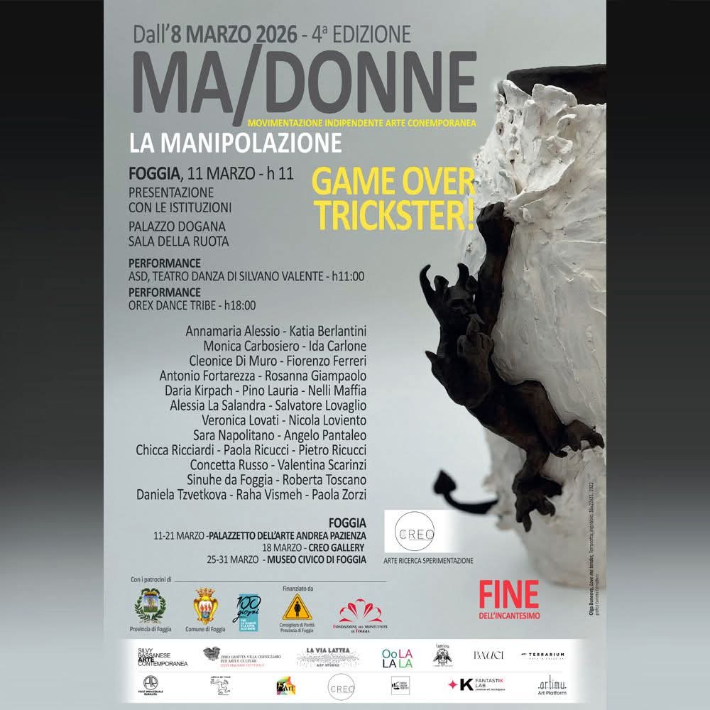 L’Assessorato alla Legalità e alla Sicurezza del Comune di Foggia evidenzia con soddisfazione la coorganizzazione della rassegna “MA/DONNE 2026 – Mobilitazione Arte Contemporanea”, promossa in occasione della Giornata internazionale della donna, sottolineando la continuità della collaborazione con CREO Gallery – Arte Ricerca Sperimentazione e con la direzione artistica di Angelo Pantaleo.