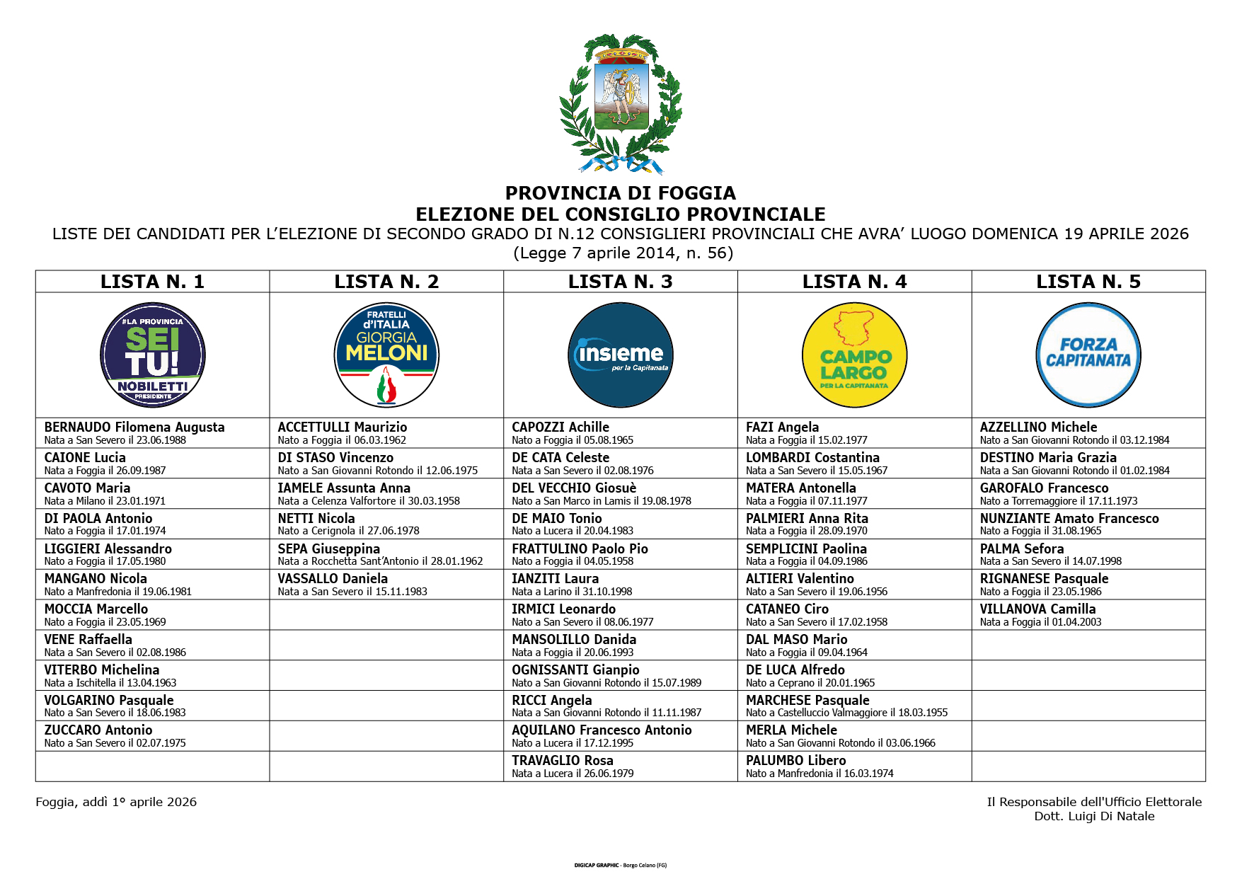 Si avvisa che elezioni per il rinnovo del Consiglio Provinciale è possibile visionare il manifesto allegato in formato digitale delle liste elettorali.